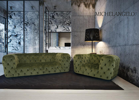 Диван — без преувеличения король гостиной. Модель "Микеланджело" — это оригинальное произведение дизайнеров и конструкторов мебели, являет собой гармоничное сочетание элегантности и изысканности. Характерная особенность изделия – ромбовидная стяжка «капитоне», выполненная по всей поверхности дивана, включая боковые внешние стороны подлокотников и спинки, которая придает модели солидный и внушительный вид. Конструкция выделяется воздушными формами, плавными линиями и изящной техникой обивки. Декоративная прошивка, придает данной модели особую роскошь. Обивка может быть выполнена в коже или ткани. Экстравагантный, бросающийся в глаза диван будет изюминкой интерьера любой гостиной, оформленной в стиле арт-деко. Данная модель имеет размеры, которые не теряют своей ценности на протяжении уже многих веков.