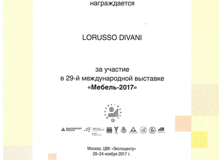 С 20 по 24 ноября в ЦВК «Экспоцентр» прошла 29-ая международная выставка «Мебель-2017», в которой ателье мебели «Lorusso divani» принимало участие. На нашей экспозиции были представлены самые популярные классические диваны «Флоренция», «Честер» в итальянской золотой коже и современный диван «Бари». Для обивки диванов были использованы актуальные ткани из новых коллекций. Мы благодарим посетителей выставки за проявленный интерес к нашим изделиям, а также за положительные отзывы о нашей компании.